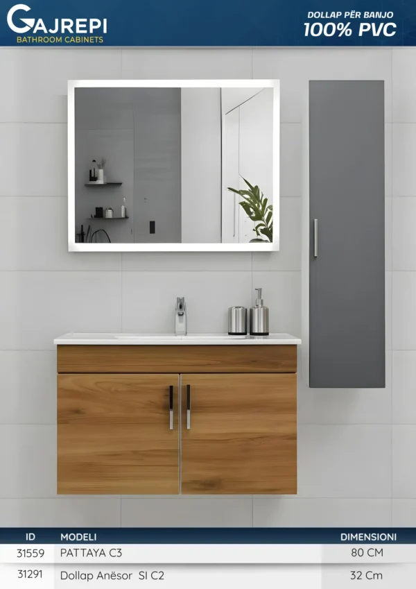 – Komodën kryesore me lavaman, Pasqyre LED dhe Dollapin Anësor SI C2