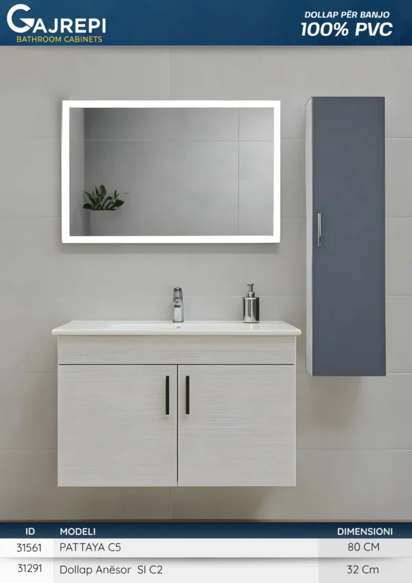 Ky dollap banjoje është prodhuar tërësisht nga PVC 100% i pastër, një material që garanton rezistencë të lartë ndaj lagështisë, mykut dhe deformimit me kalimin e kohës. Falë ndërtimit të tij modern dhe cilësisë së lartë, ky produkt është ideal për ambiente banjoje, duke ofruar funksionalitet, qëndrueshmëri dhe estetikë në çdo hapësirë.